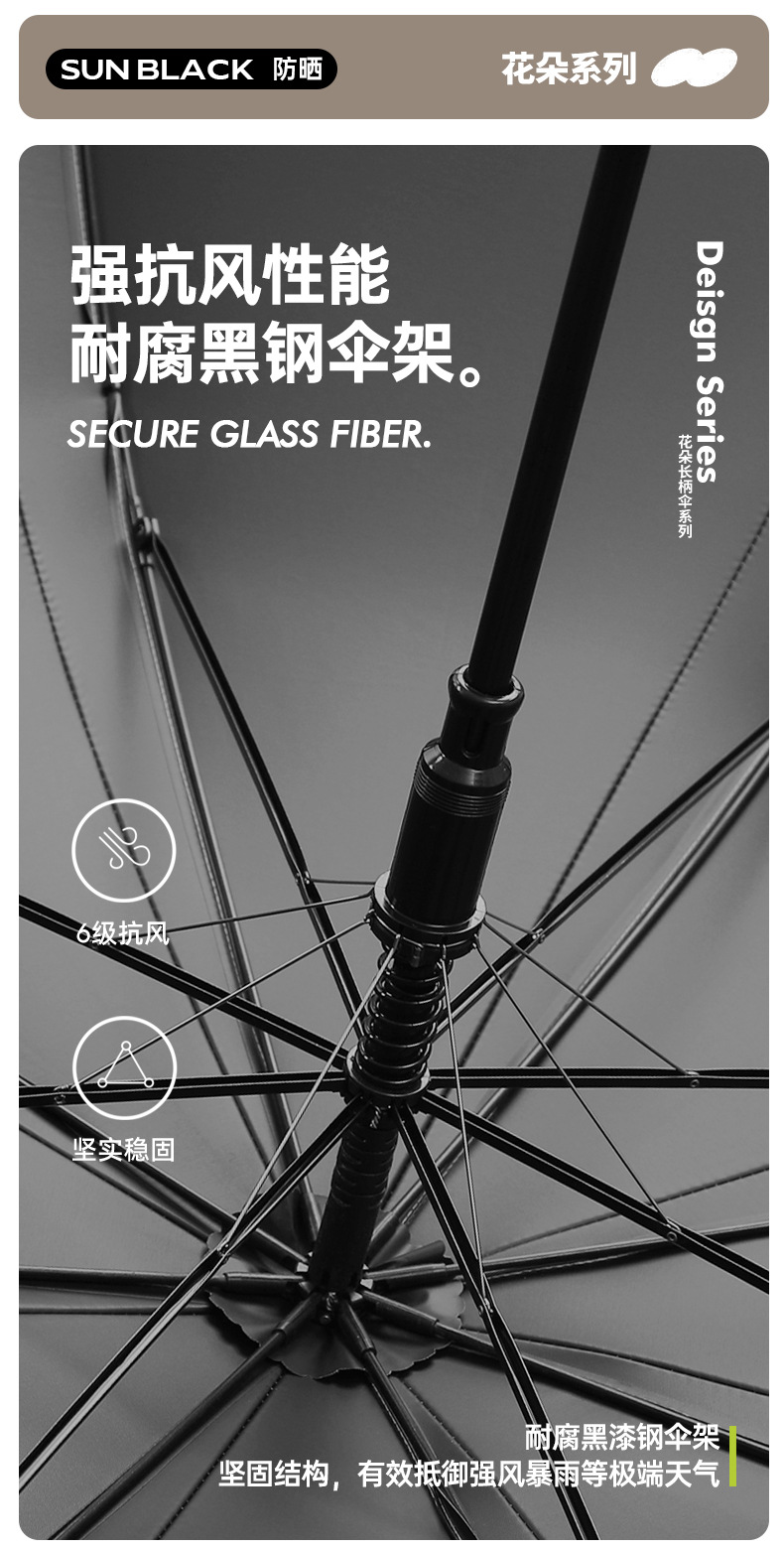 【骨架】:23寸x8k黑色自動鐵中棒纖維骨