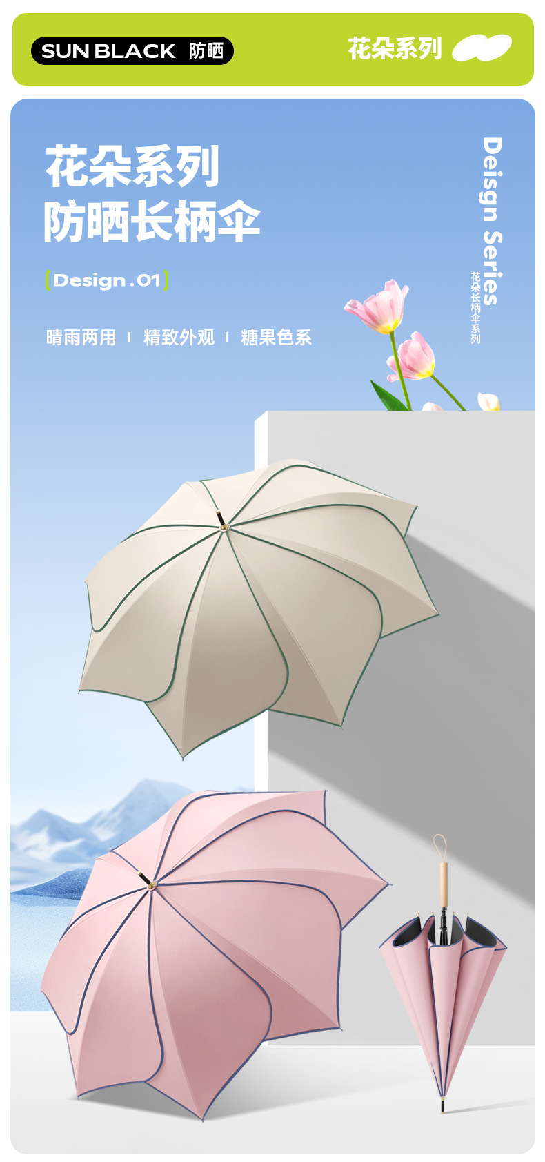 > 花朵木直柄傘