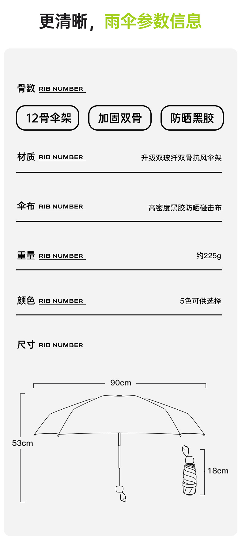 【布料】:190T 黑膠布防紫外線