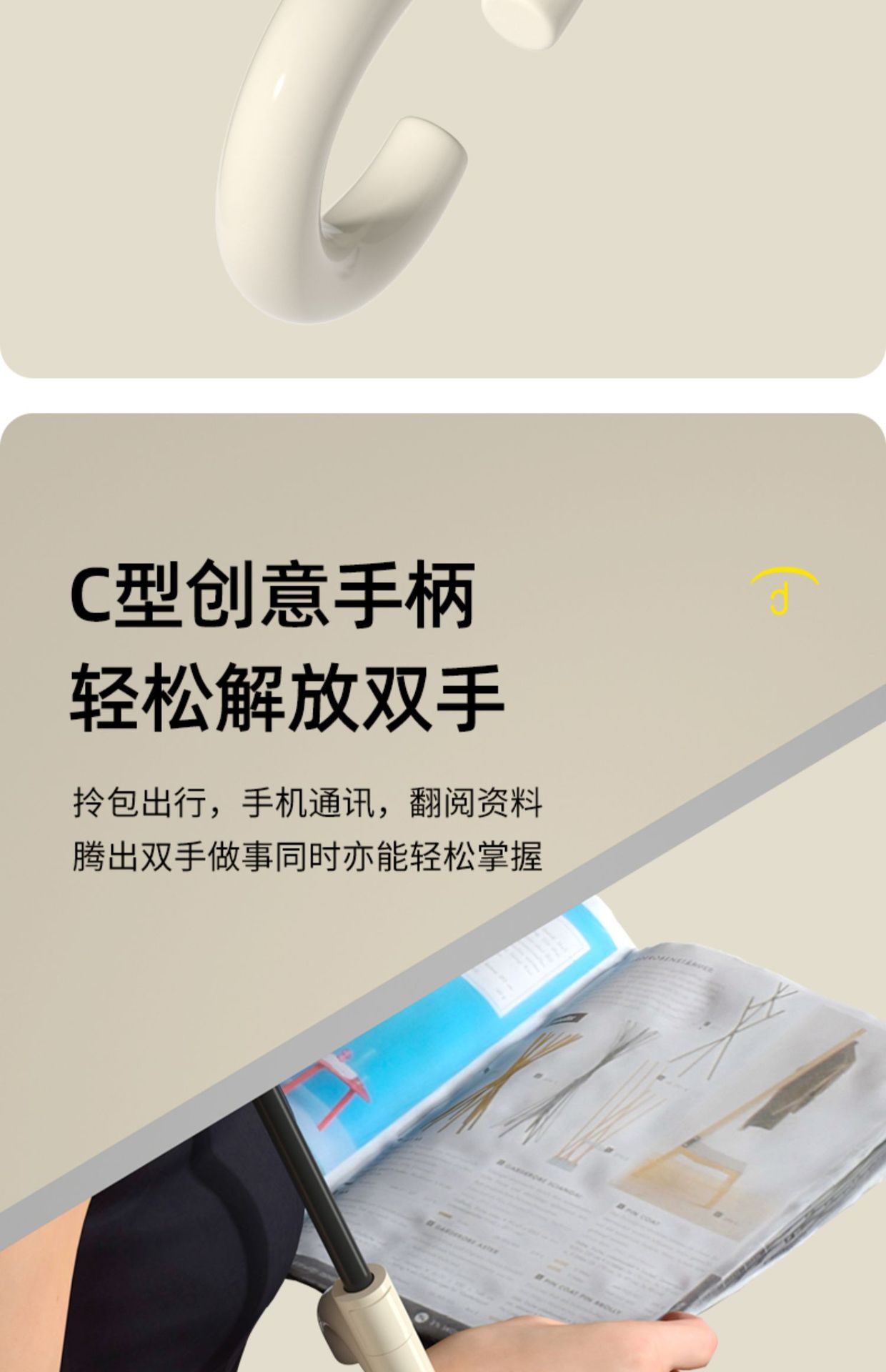 【傘頭】:C形塑膠手柄
